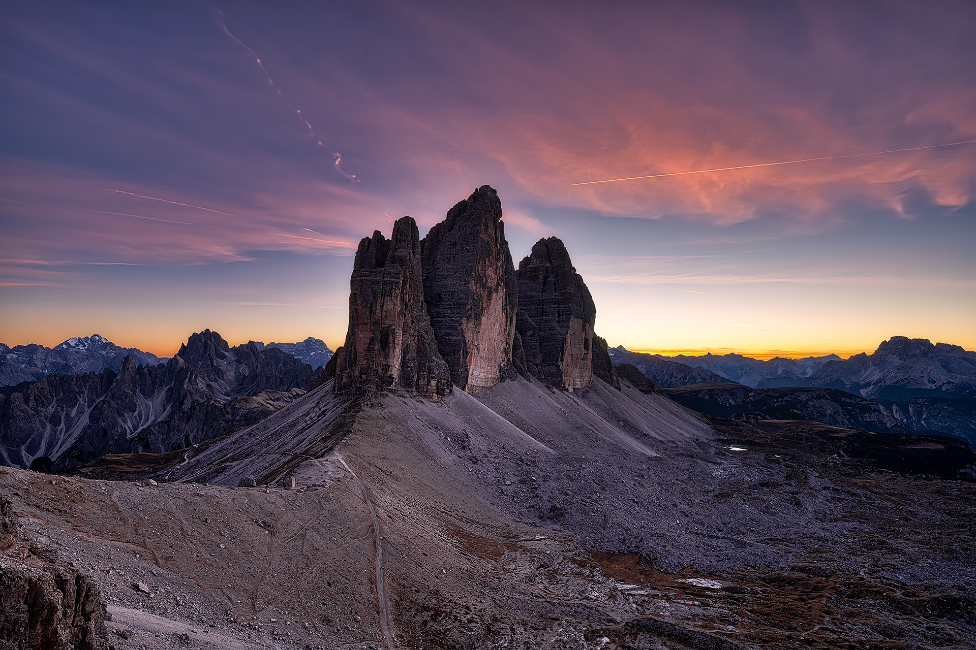 Tuttavia sono carico di adrenalina e mi viene la folle idea di risalire in montagna per la presenza nel cielo della Cometa C-202 e per le ottime condizioni meteorologiche. L’intenzione è di dirigermi verso le Tre Cime di Lavaredo riducendo il peso dello zaino, ma prendendo l’occorrente necessario ad affrontare una ferrata; volevo infatti scalare una parte della ferrata Innerkofler del Monte Paterno, convinto che dalla forcella Lavaredo avrei potuto avere una vista straordinaria.